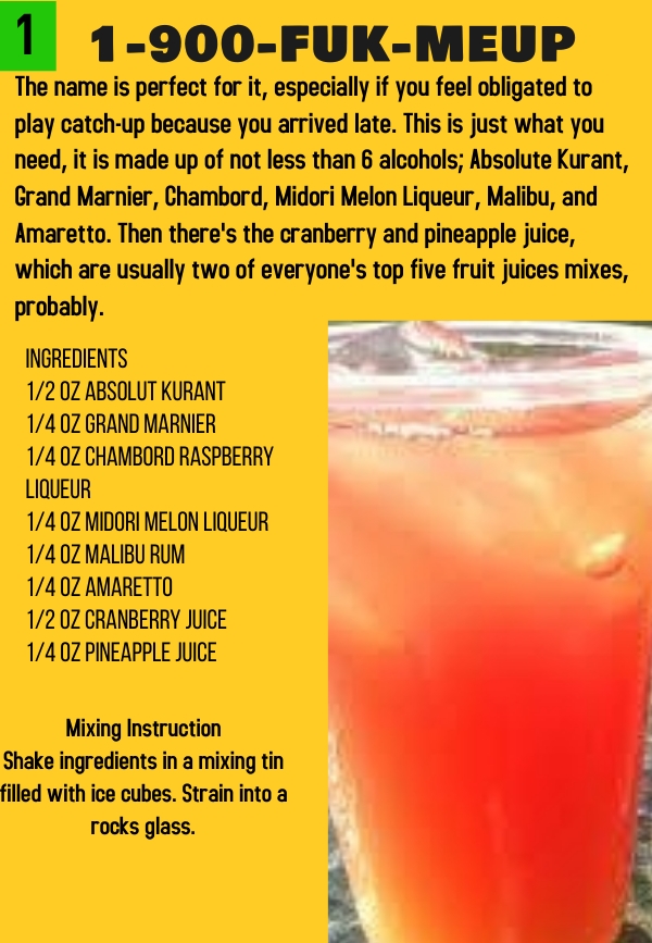 Here is a list of our 5 fantastic Cocktails with outlandish names, please feel free to tell us your weirdest cocktail name you’ve seen or made up. Tell us in the comment below.